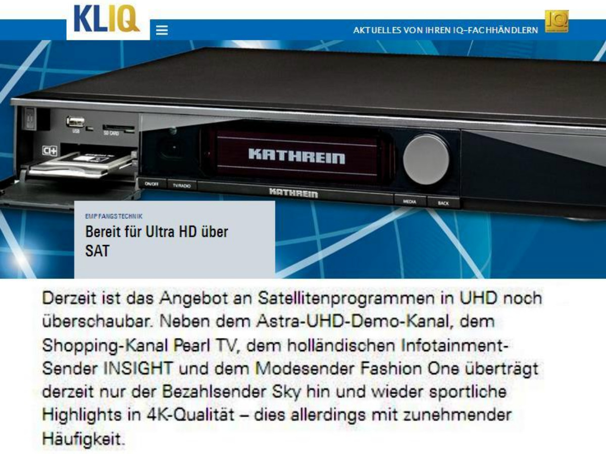 Auf unserer Ratgeberseite http://www.kliq.de finden Sie viele aktuelle und interessante Berichte rund um die Themen TV, Empfangsanlagen und Haushaltsgroßgeräte und Kleingeräte.